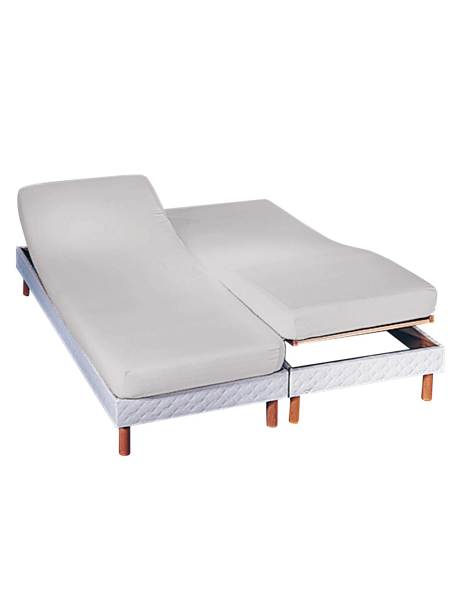 – Renforcé au centre et élastiqués sur le pourtour, le drap-housse s’adapte parfaitement aux matelas désolidarisés grâce au jointif situé au milieu