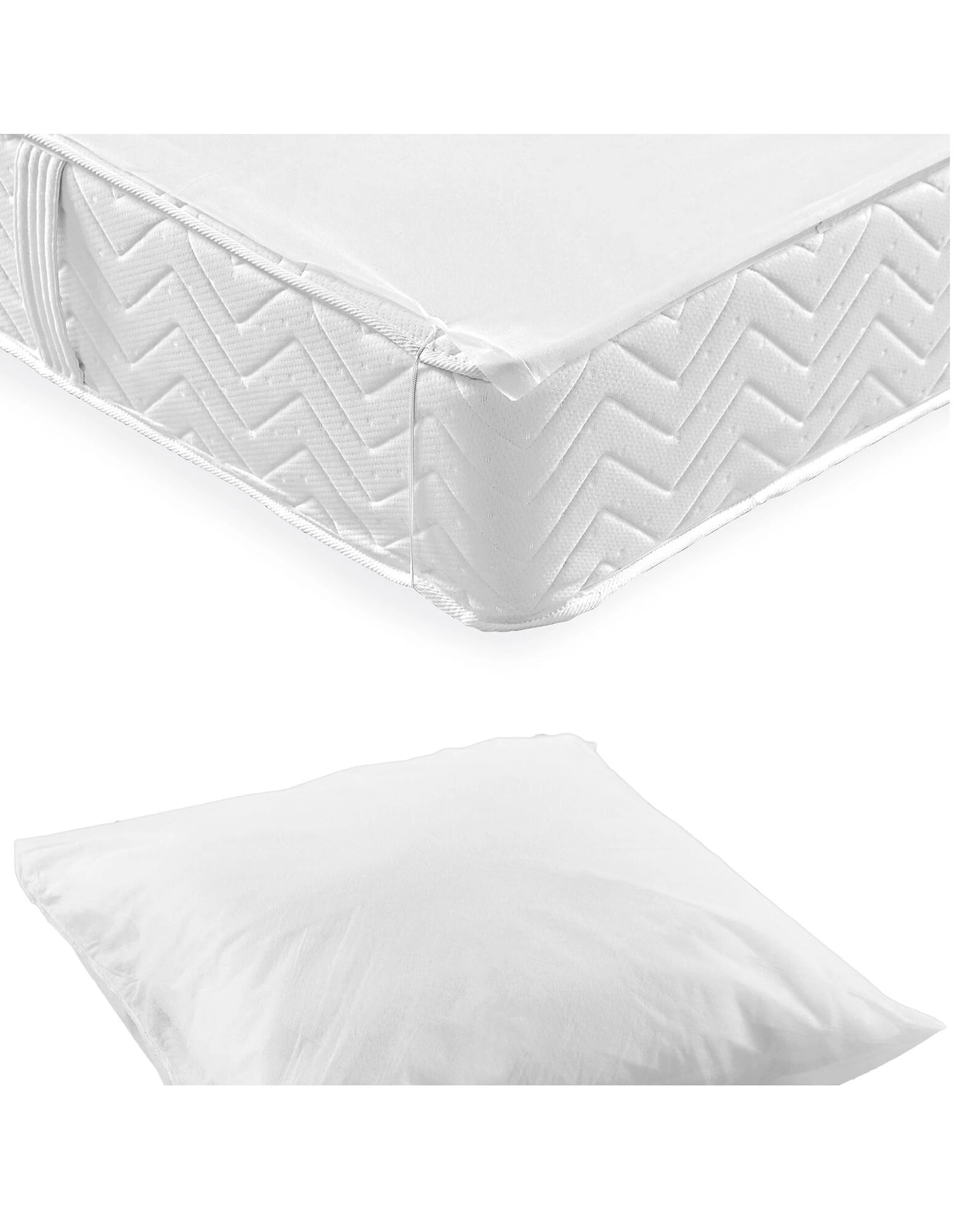 – Lot 2 personnes = 1 protège-matelas 140×190 cm + 2 protège-oreillers 60×60 cm.
