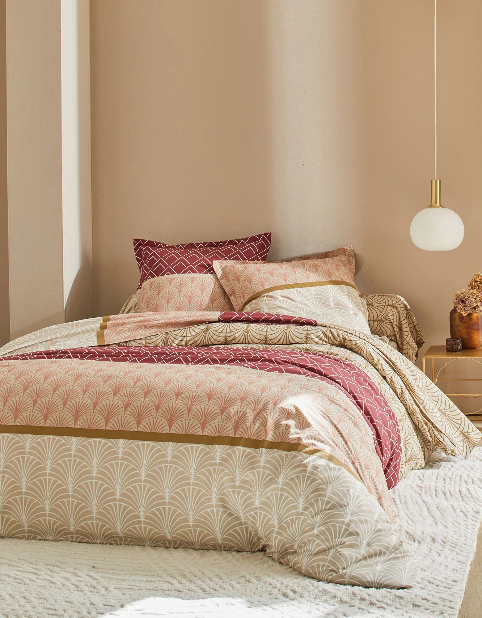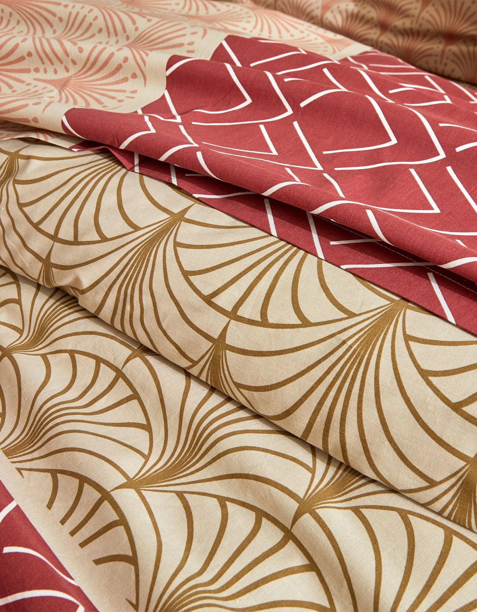 – Housse de couette, imprimé effet placé : 2 faces identiques. Forme bouteille pour bien border. Existe en grande taille (260×240 cm)