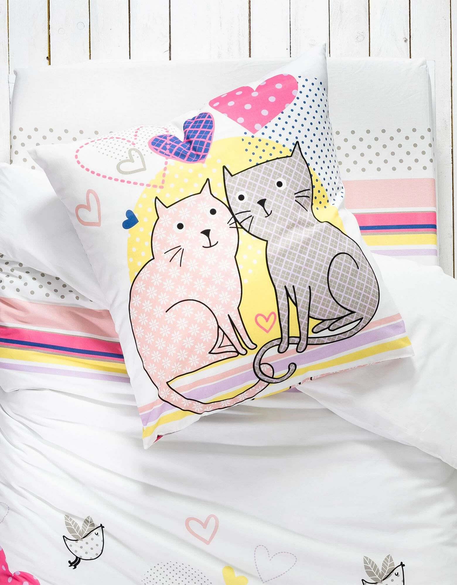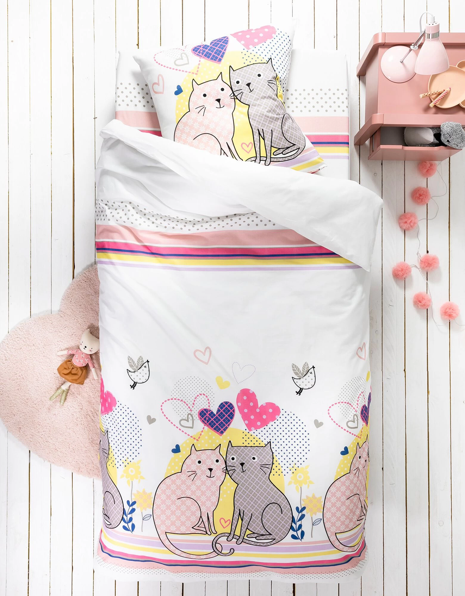– Drap-housse (90×190 cm) : motif effet placé, coins bien emboîtants (bonnet 26 cm)