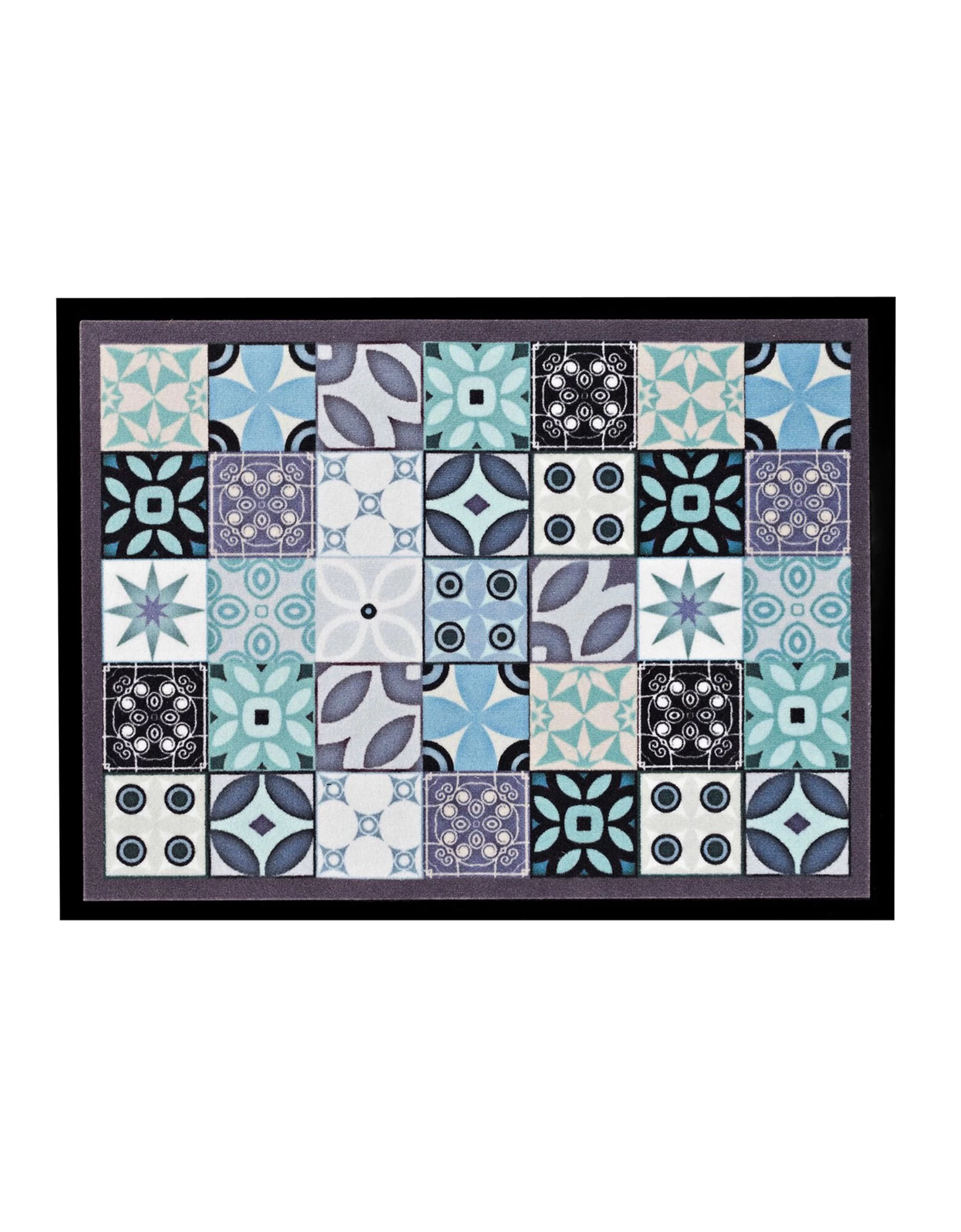 Un joli motif façon carreaux de ciment pour ce tapis anti-poussière motif rosaces protège vos sols de la poussière, l’eau, la boue !